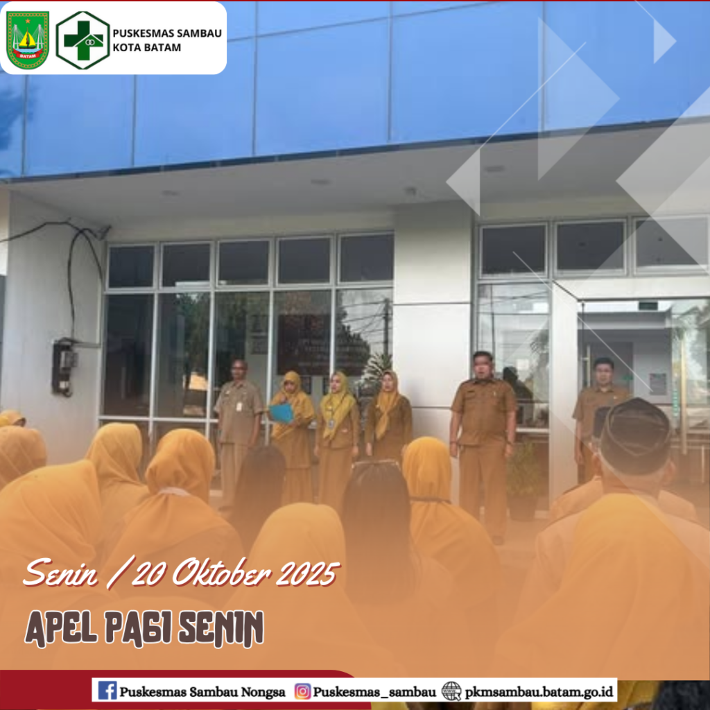 Kegiatan APEL ini rutin dilaksanakan setiap hari Senin Pagi di halaman depan Puskesmas Sambau. Pada Senin / 20 Oktober 2025 kegiatan APEL dipimpin oleh Bapak Jupiter, SKM selaku Kepala Puskesmas Sambau, beliau mengamanatkan agar staf puskesmas Sambau selalu menegakkan disiplin, datang tepat waktu (tidak terlambat) dan dalam memberikan pelayanan kepada masyarakat harus sepenuh hati.